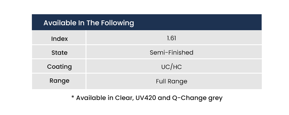 Ultra-Flex lenses, with a high Abbe value, provide a clear vision and more comfortable wearing experience.